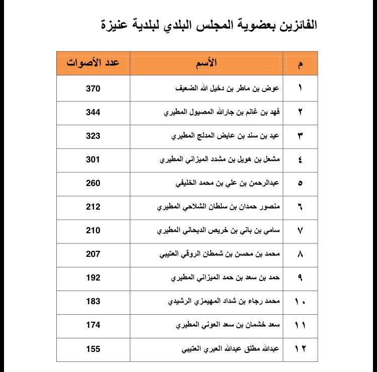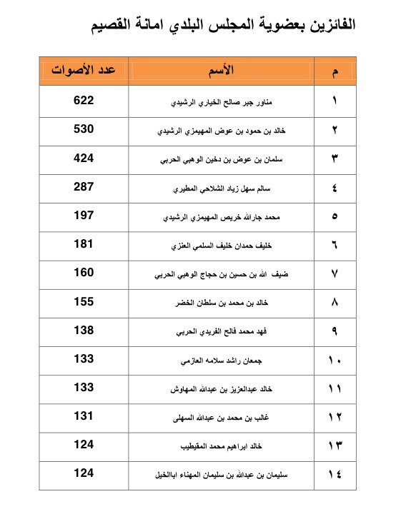 ![]() ![]() ![]() ![]() ![]() ![]() ![]() ![]() ![]() ![]() ![]() مدينة حائل عايد عبدالله العديم ٥٨٦ صوتاً بشير مزعل العنزي ٥٥٧ صوتاً عبدالعزيز المشهور ٤٩٣ صوتاً منزل الرشيدي ٤٦٦ صوتاً سعود العجلان ٤٠٩ صوتاً مروي شعير الجبرين ٣٧٥ صوتاً سلطان القرناس ٣٤٠ صوتاً منصور عبدالله الرشيدي ٣٤٠ صوتاً مطلق الشلاش ٣٣٣ صوتاً فهد الجلعود ٣٢٢ صوتاً عيسى راشد التميمي ٣٢١ صوتاً فهد الرشيدي ٣٢٠ صوتاً فهد العامر ٣٠٣ صوتاً عبيد فهيد الشمري ٢٦٩ صوتاً الروضة: خالد بن عيد الشمري حسن بن مشعان العنزي فيصل بن مدله الرشيدي خالد بن صالح الرشيدي جلوي بن معدي العنزي عمر بن عبيد العياد التميمي محافظة الغزالة: يوسف الرشيدي لويفي الرشيدي شعيب الشمري ياسر التميمي عبدالمجيد الغازي رابح الرشيدي الحليفة: عبيد بن ثاري الرشيدي محمد بن فرحان الرشيدي عوض بن مسلم الرشيدي إبراهيم بن حادي الرشيدي فياض بن سليمان الرشيدي راشد جمعان فالح الرشيدي |