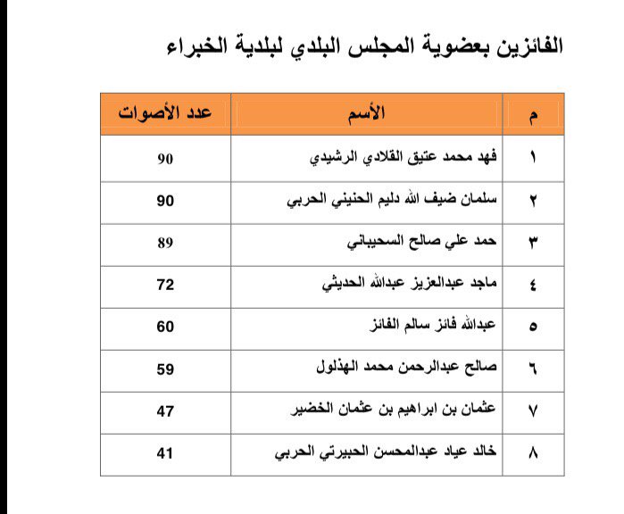 | الفائزون بالانتخابات البلدية من بني رشيد | بدر العويمري | المنتدى الاعلامي | 1 | 10-03-2011 09:47 AM |